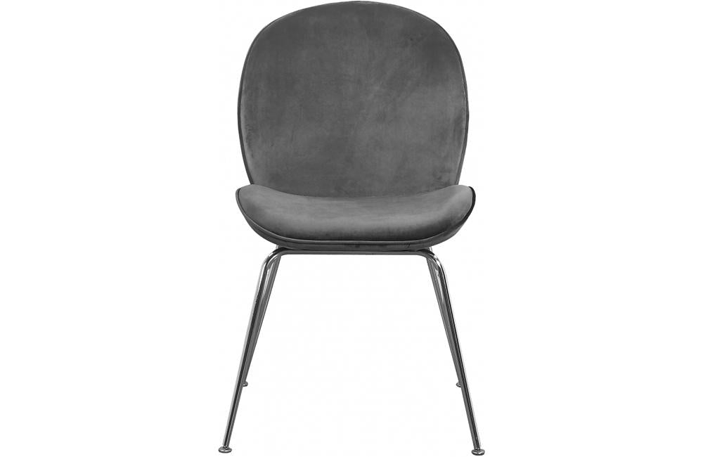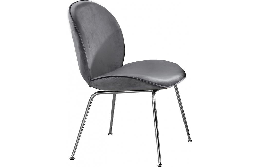 Make an impression on diners with this Zacharias Grey Velvet Dining Chair. This dining chair features velvety sleek upholstery that feels luxurious against the skin and that holds up well to normal everyday use. The all-metal base is finished in gleaming polished chrome for a luxe, modern look and dependable wear-and-tear. Each seat is plumply padded to ensure guests are comfortable from start to finish.
