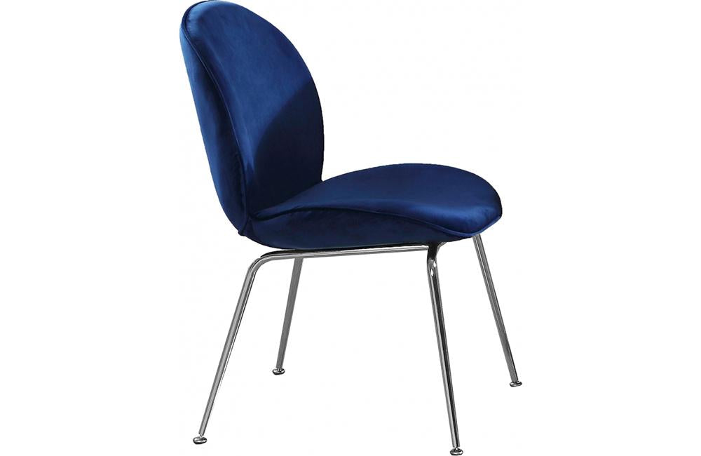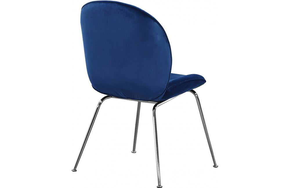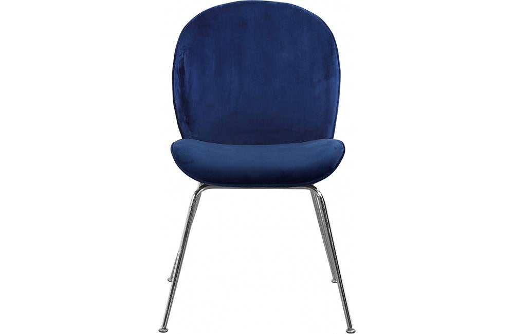 Make an impression on diners with this Zacharias Navy Velvet Dining Chair. This dining chair features velvety sleek upholstery that feels luxurious against the skin and that holds up well to normal everyday use. The all-metal base is finished in gleaming polished chrome for a luxe, modern look and dependable wear-and-tear. Each seat is plumply padded to ensure guests are comfortable from start to finish.