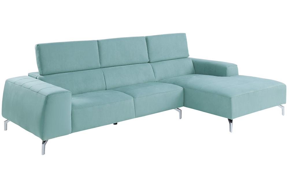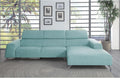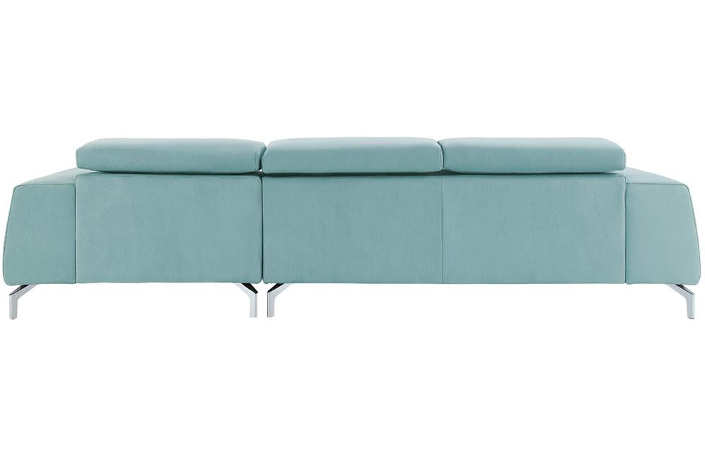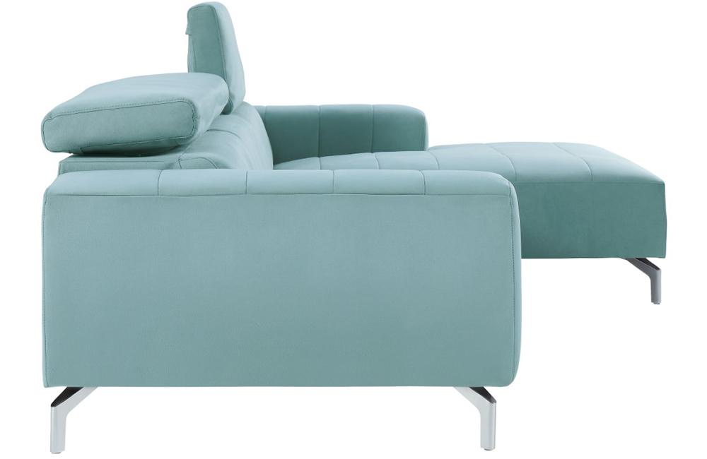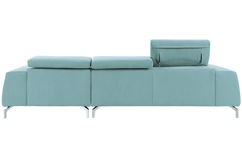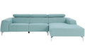 Designed for the contemporary space that you have envisioned for your living room, the Zanardi Collection is a sleekly styled sofa-chaise that will serve as the inspiration from which your color palette will take flight. The subtle teal hue of the fabric covering the modern frame is elegantly accented by the chrome-finished support legs. The right side of the sofa is elongated with the addition of a chaise that provides the perfect spot to recline. Furthering your comfort are the click-mechanism headrests that adjust for a personalized relaxation experience.